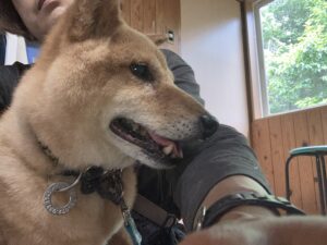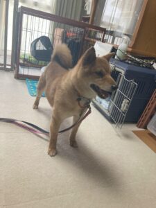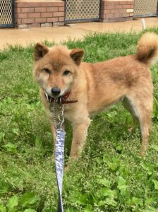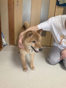 そんな中、あるご夫婦が犬を探しに施設に足を運んでくださいました。長く飼われていた柴犬の女子を介護の末に亡くされ、同じ赤柴の女の子を探しに来られたのでした。HPで目当ての子2頭を定めてご覧になられたのですが、その子たちは人慣れができておらず、犬小屋に逃げ込んでしまい、お眼鏡にはかなわないままお帰りになりました。入れ違いに兵の散歩練習から帰ってきた訓練士は、ぜひ兵を勧めてほしかったと受付にお伝えしたところ、即、そのご家族様に電話をして「兵はどうですか?」と聞いてくださいました。すると、念ずれば通ずるのか、ご主人様も「ちょうど訓練日記を見て兵が気になっていた」とおっしゃって下さり、奥様を説得して兵に会いに来てくださいました😊