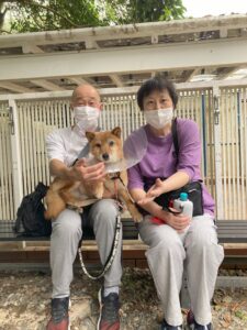 とはいえ、怖がりの兵のこと、気に入っていただけるものかしら…と迎えた初対面。案の定、引き気味の兵に、ご夫婦は「かわいい!かわいい!」の連呼を下さり、「この距離感が柴距離でいいんですよ」と訓練士よりもはるかに深い理解を示してくださいました。それからは、毎週、お散歩とふれあいに来てくださり、少しずつ兵との距離を縮めてくださったのでした❤️