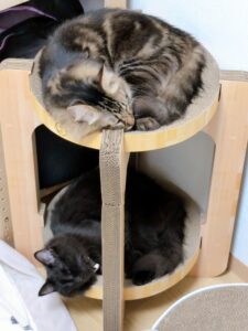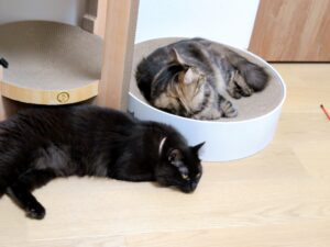 キンパがお家開拓をしていって、キムチが後から慣れてくると教えていただきました。キャットタワーも導入していただきました。