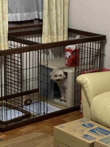 サークルのそのまた個室でうずくまり、その間に手続きをしましたが一歩も動かず…