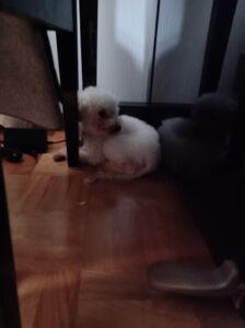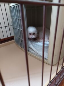 今年の5月、飼い主様のご病気などで飼育困難となり、白のトイプードルが3頭やって来ました。