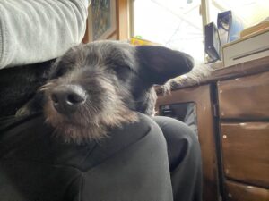 ボーイ君を膝に乗せて暖を取らせてもらってます。