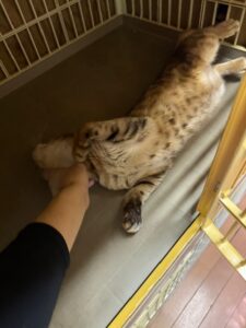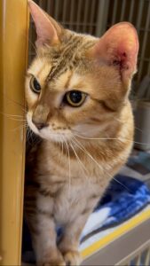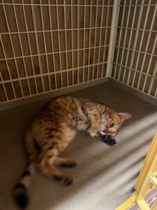 ベンガル風な毛の模様もキリッとした顔でカッコイイ系女子のレンちゃんですが、スタッフが掃除を始めると、、