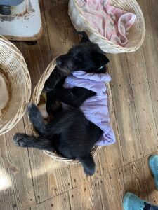 2026/02/07ストーブ 受付のストーブをつけると、みんなストーブの周りに集まってきて好きなところで寝ています。 その中で京都から35頭保護されてきた中の1頭、銀閣君がヘソ天で舌チロで寝ていました。 可愛すぎる♡ 銀閣 ストーブの反対側にはカミ君がカゴに入ってましたが保護されてきた時よりも体が大きくなっていて、カゴからはみ出てました(笑) あー!かわいい♡ カミ 受付班:小澤 前の記事へ スタッフ日記一覧へ