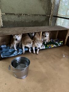 2025/11/22ハッピーハウスの日常 午後2時過ぎから始まる小型のドックラン中、いつもスタッフの前にお座りしておやつをねだっているおもちくんです。 背筋をピンと伸ばしておすわりするので、いつもついついあげすぎてしまいます。 おもちくん お次は外犬舎の掃除中に不意に撮ってしまった1枚。 ここの犬舎では現在柴犬7頭が生活しているのですが、この写真を取る直前まで綺麗に顔を並べて小屋の中でお座りしていました。 その瞬間を撮れたら良かったのにな。 飼育班:岸井 前の記事へ スタッフ日記一覧へ