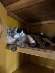 少し独特な姿勢でくつろぐ姿、、たまらん🤤💓 下敷きにされてる2匹も満更でも無い顔してる笑 人に興味はあってもまだ少し距離のあるカギちゃんですが、猫ちゃんとはどの子とも大の仲良しです!! 他の猫ちゃんと一緒だとスリスリしに来てくれて撫でさせてくれます👏🏻 施設見学に来られた際に猫ちゃんとラブラブなカギちゃんに癒されてください!!