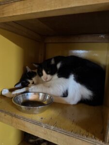 薫ちゃんハウスで生活しているカギちゃん🐱(写真2枚とも右の子です)