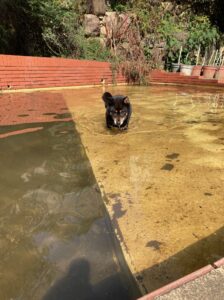 大雨の翌日、川の増水でプールになみなみと水が溜まりました。
