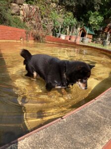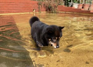 ほとんどのワンちゃんが見向きもしない中、おもむろにひじきがプールの中へ。